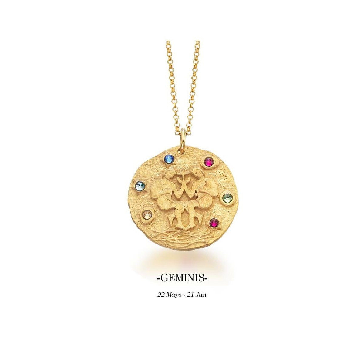 Colgante horóscopo Géminis en plata recubierta oro y colores